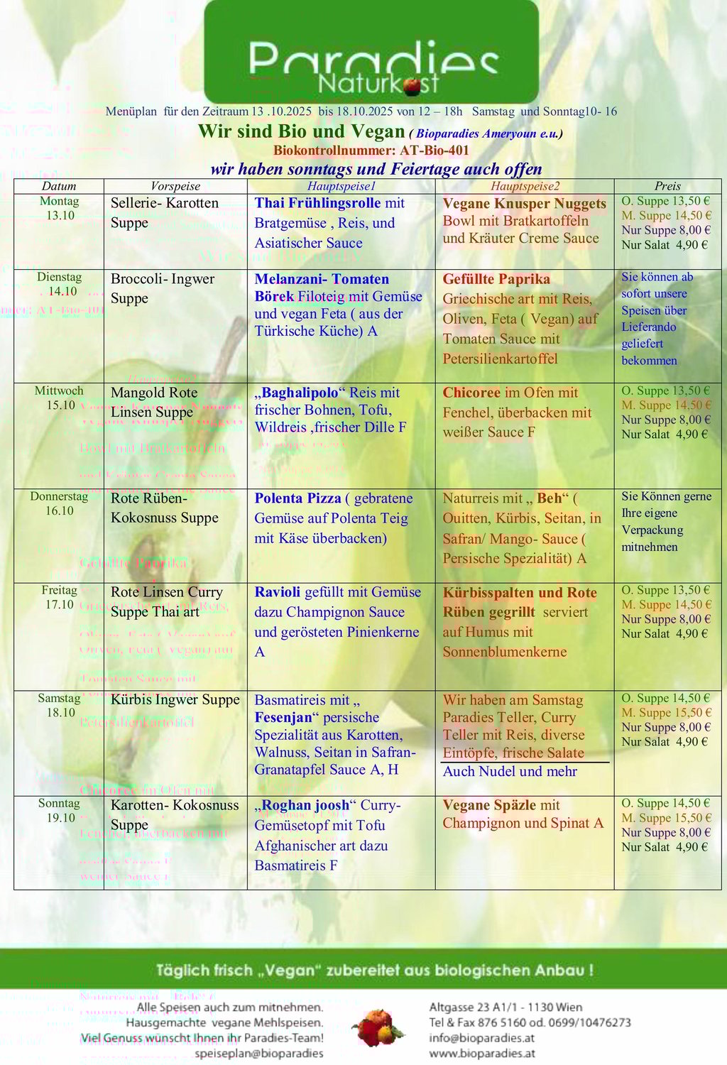 "Bio Paradies" ist ein Restaurant, das sich durch seine beeindruckende Vielfalt an Gerichten auszeichnet. Mit einer breiten Palette von frischen, biologischen und veganen Speisen begeistert es jeden Tag aufs Neue. Die Vielfalt der angebotenen Gerichte macht "Bio Paradies" zu einem Ort, an dem Gäste immer etwas Neues und Köstliches entdecken können.